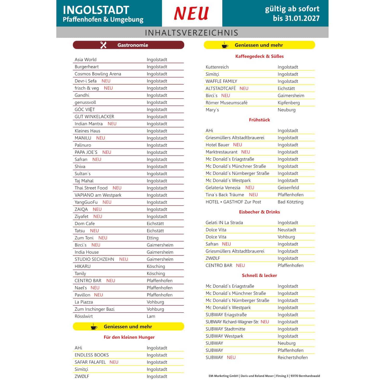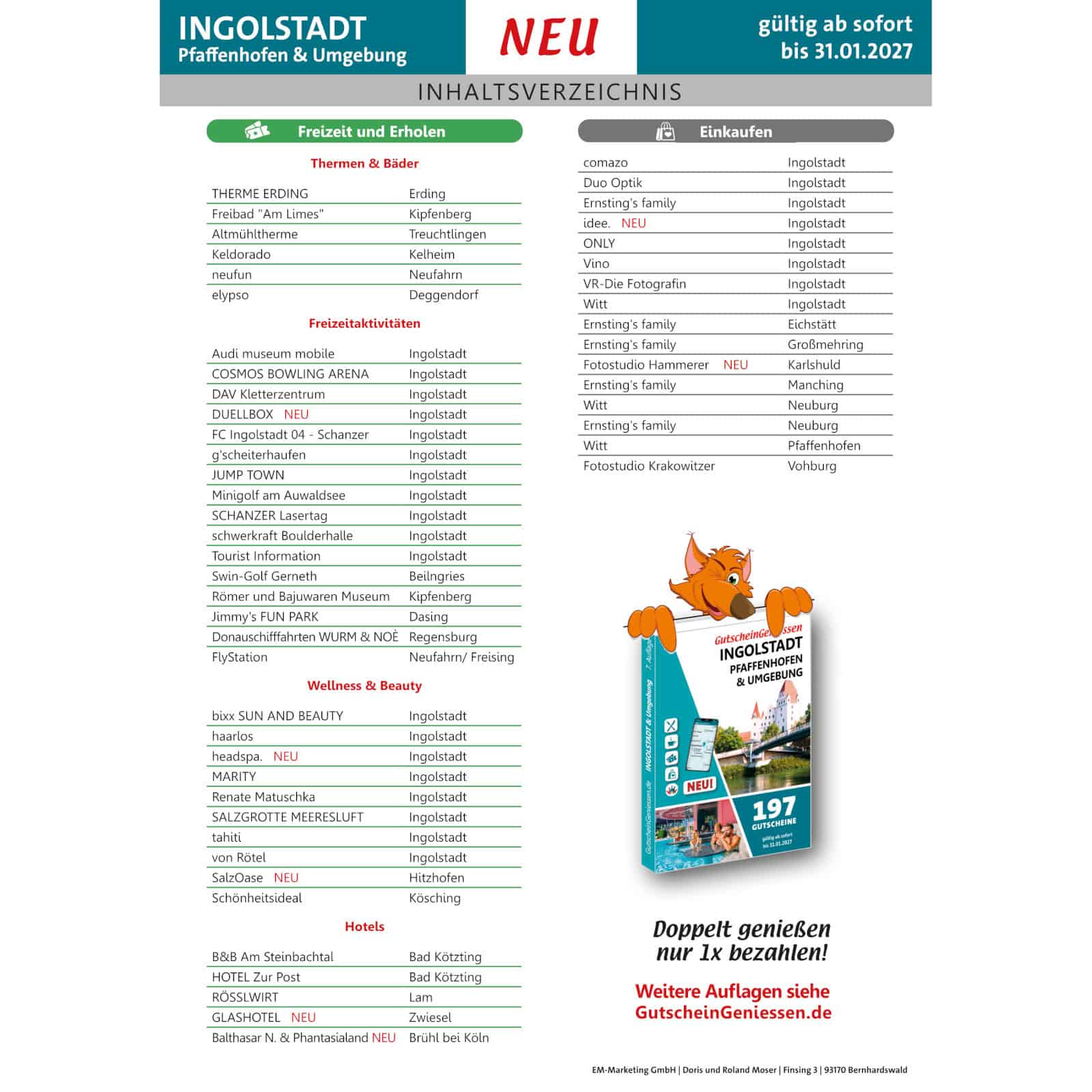 Sparen Sie mit Ihrem neuen Gutscheinbuch GutscheinGeniessen in Ingolstadt, Pfaffenhofen und Umgebung.
